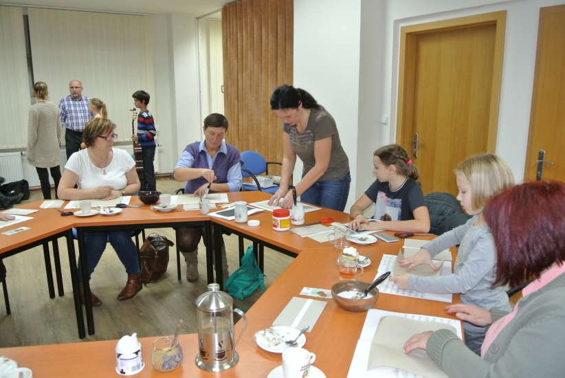 Ve středu 14. prosince se sešli zájemci o poslední letošní dílnu v netradičním čase až v 17.00 a tvoření se neslo v duchu příprav na nový rok. Pod vedením Jiřiny Halmlové a pod rukama šikovných tvůrců tady totiž vznikaly diáře na rok 2017.