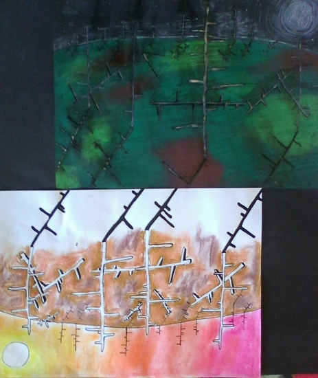 Výtvarné práce, které postoupily do krajského kola soutěže.