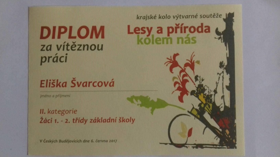 Do krajského kola postoupily ty nejlepší výtvarné práce. Třída 3.B zvítězila v kategorii tříd a Eliška Švarcová z 1. A v kategorii jednotlivců.