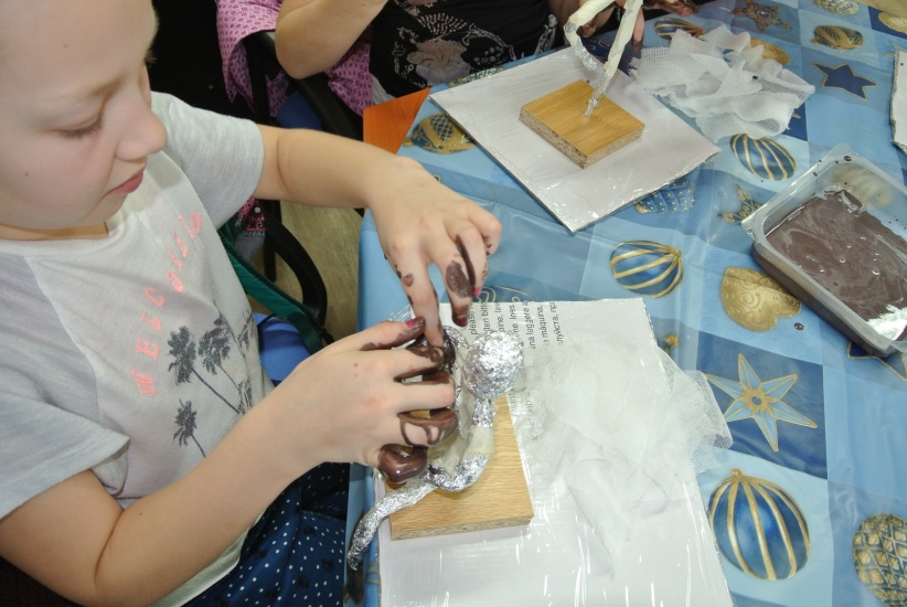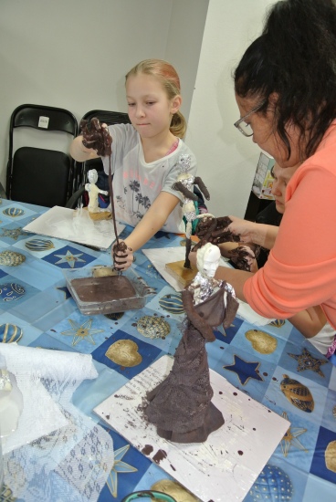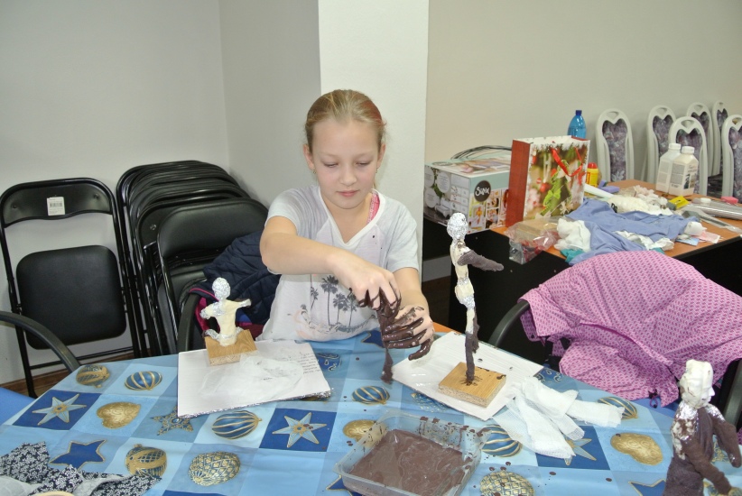Ve středu 31. ledna byla pro zájemce připravena dílna, kde si mohli vyzkoušet neobvyklou techniku výroby sošek. Je neuvěřitelné, že z původně pouze drátěného obrysu postavy se účastníkům pod vedením paní Petry Exnerové podařilo vytvořit krásné sošky, jak dokazují obrázky.