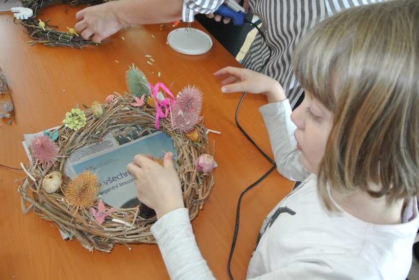 Ve středu 21. března jsme si jarní atmosféru v knihovně navzdory počasí venku, navodili tím, že jsme vyráběli pod laskavým vedením Mgr. Terezky Vojtíškové jarní věnce.