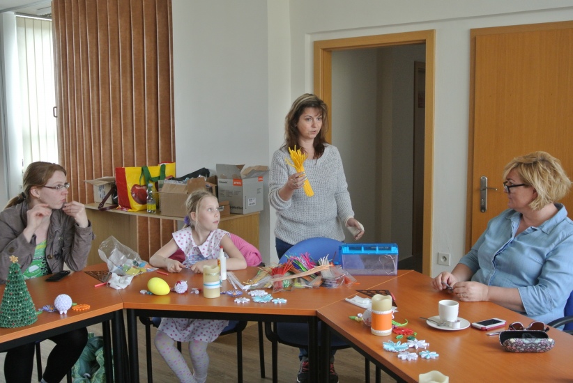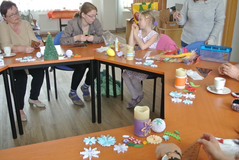 Ve středu 11. dubna si účastníci výtvarné dílny poprvé mohli vyzkoušet techniku tvoření z papíru tzv. quilling. Jeho základy je do knihovny přišla naučit paní Jana Žáková.