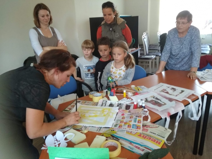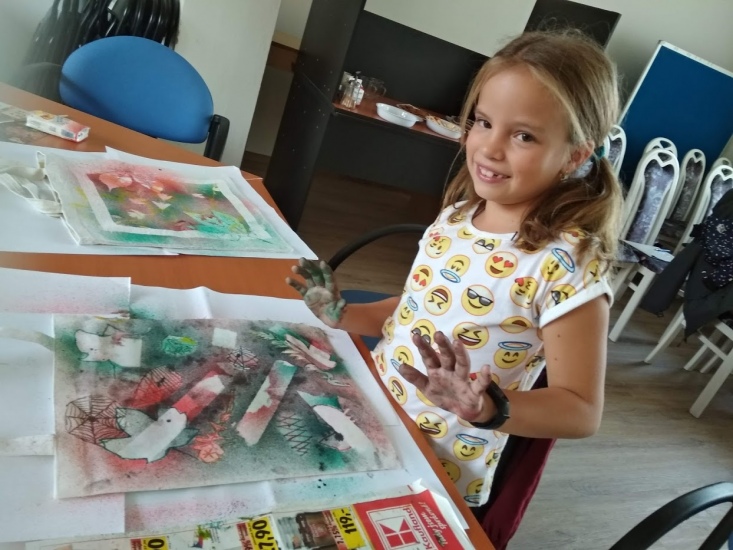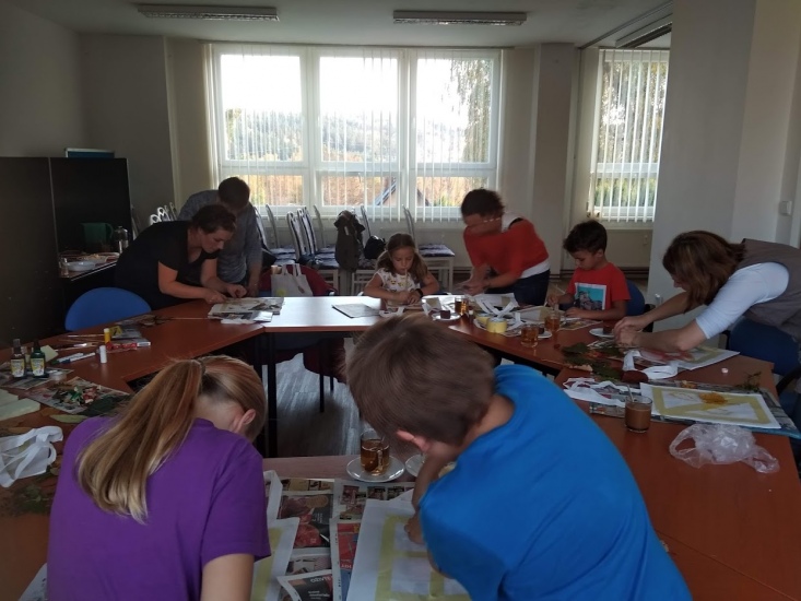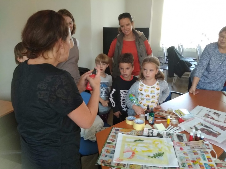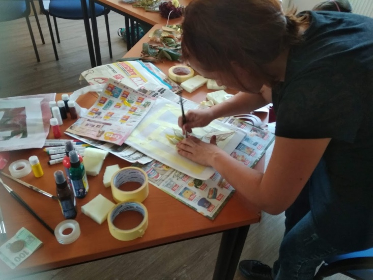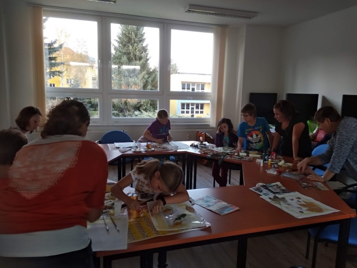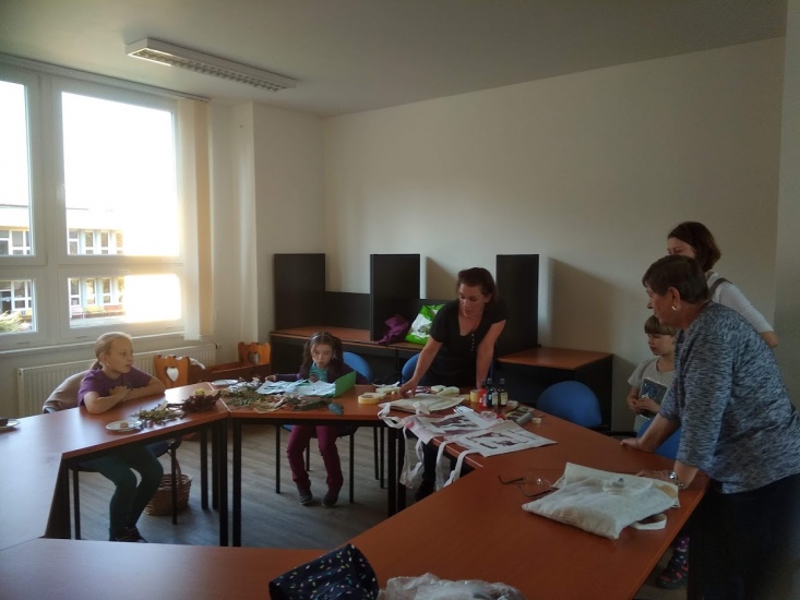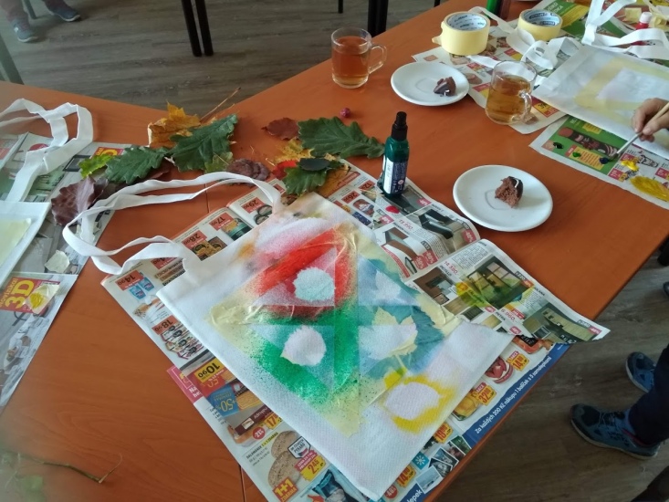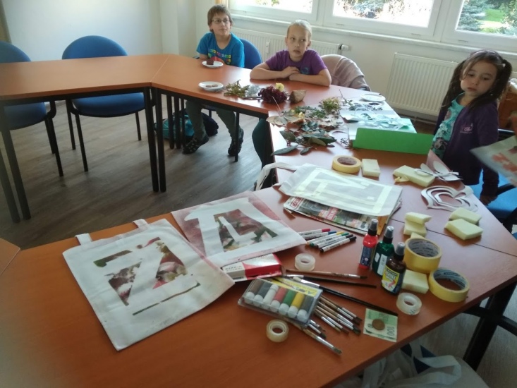 Ve středu 17. října byla pro zájemce připravena dílna, na které si každý pod vedením Terezy Vojtíškové krásně vyzdobil tašku. Tereza nejprve všem ukázala postup a pak už každý tvořil podle své fantazie za jejího laskavého dohledu.