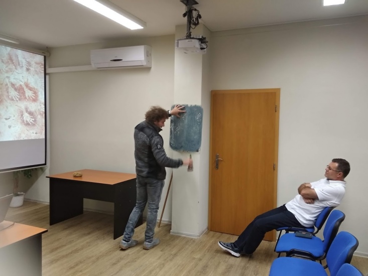 Ve středu 17. října v podvečer jsme v naší knihovně přivítali malíře, restaurátora a znalce výtvarného umění pana Josefa Paloudu, který měl pro nás připravenou první část z cyklu "Jak naučit Leonarda malovat". Spolu s ním jsme se přenesli do jeskyní pravěkých lovců a putovali dějinami až k secesi a to vše, aby nám přiblížil nádhernou techniku zdobení interiérů - šablonovou výmalbu.
