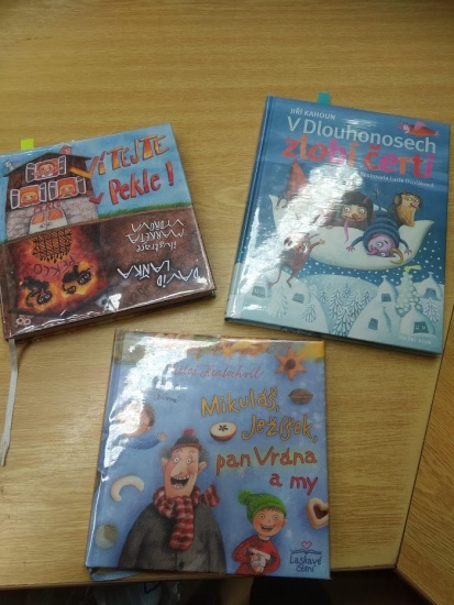 V pátek, 30. listopadu, přišly do knihovny děti ze třetího ročníku s paní učitelkou Temiakovou. Byly pro ně připravené nové knihy hlavně o blížících se Vánocích a čertech. Prostřednictvím knihy "Áďa spadla do kanálu" jsme nahlédli do historie Prahy. Některé děti četly nahlas úryvky z knih a četly opravdu velmi dobře!!