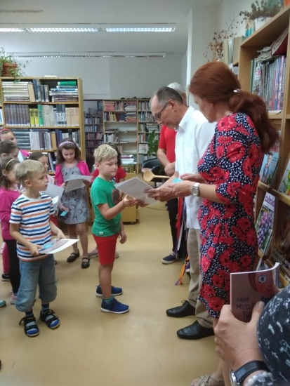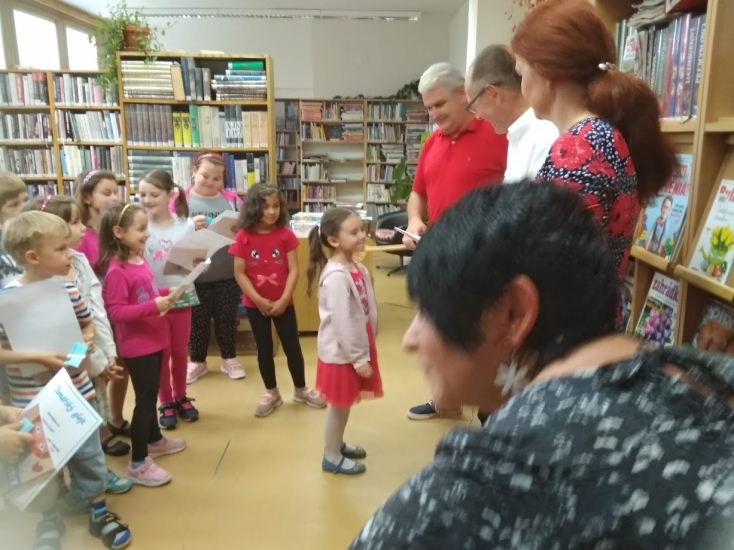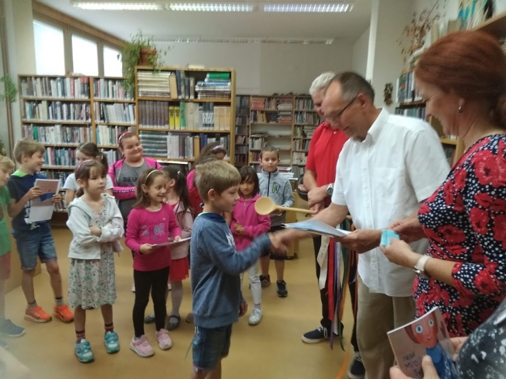 V pátek 7. června proběhlo v naší knihovně už patnácté pasování prvňáčků na čtenáře. Akce se kromě pasovaných dětí zúčastnil i starosta a místostarosta města a paní učitelky obou tříd. Děti dostaly čtenářský glejt, knížku Kde se nosí krky a možnost zdarma si půjčovat knihy během celého roku v naší knihovně.