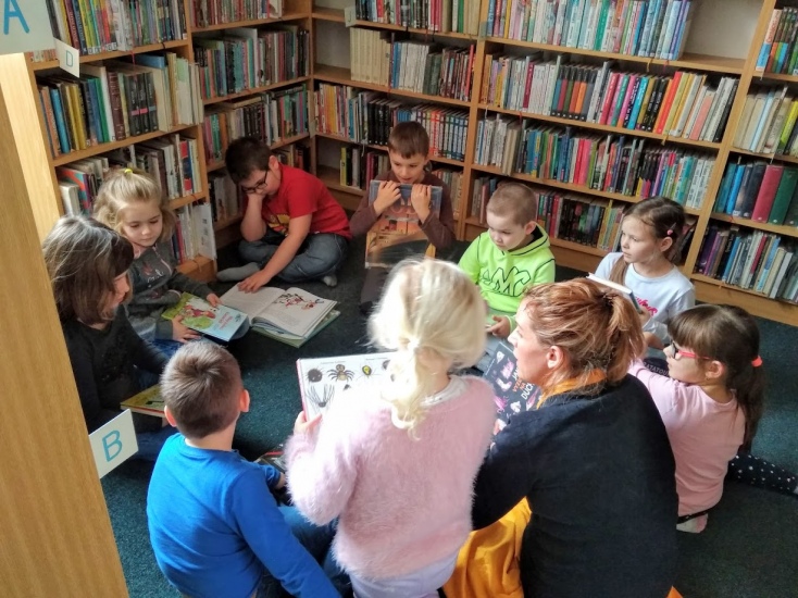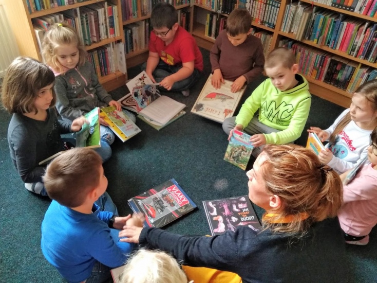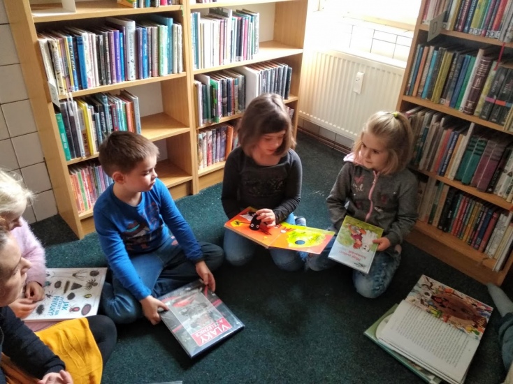 V úterý odpoledne pravidelně knihovnu navštěvují děti z klubu čtenářů s paní učitelkou Terezou Vojtíškovou. 25. února si každé z dětí vybralo knihu, která je zaujala a snažily se ostatním vysvětlit proč.