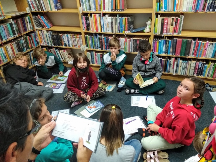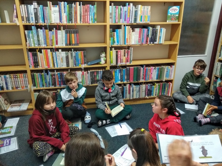 Pro žáky 4. A byly v knihovně připraveny knihy, se kterými děti pak společně pracovaly.