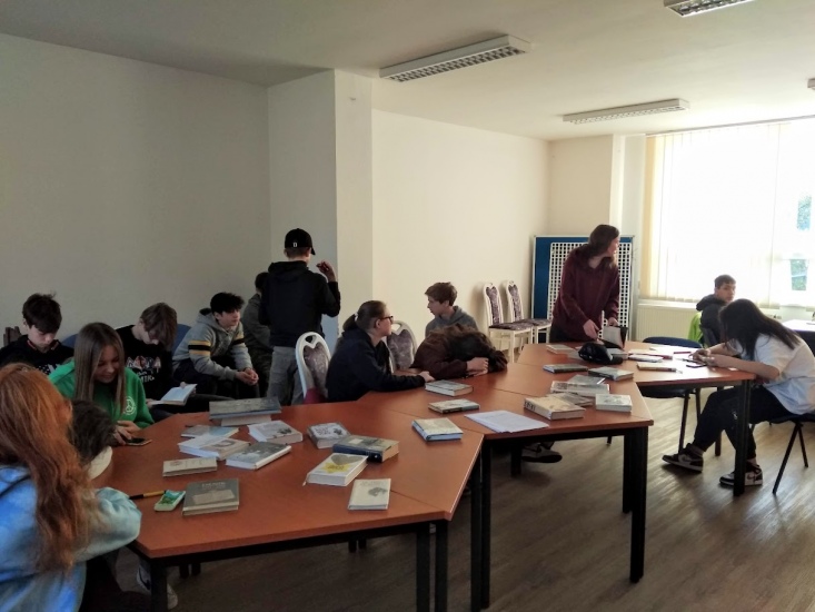 Žáci osmého ročníku v knihovně