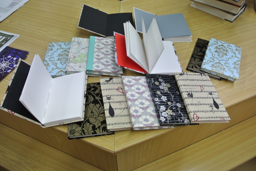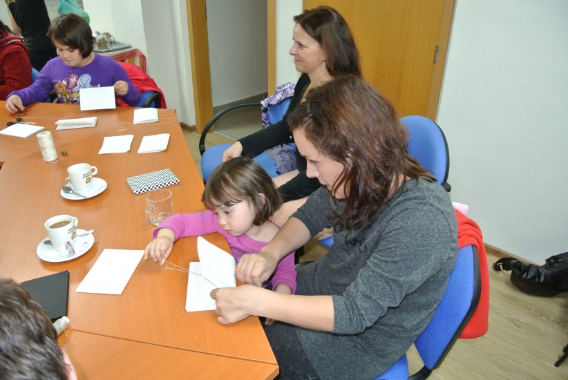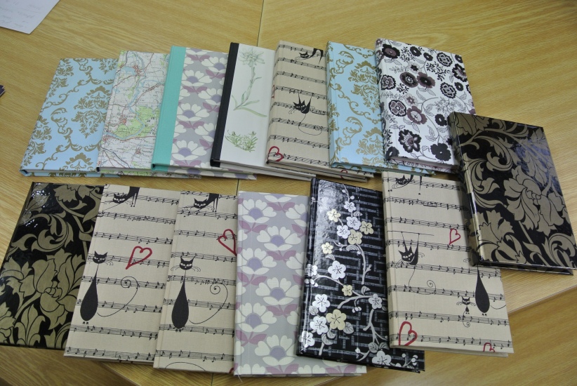 Výtvarná dílna ve středu 11. listopadu nabídla účastníkům možnost ušít si pod vedením knihařky Jiřiny Halmlové notýsek. A že je to práce nelehká zjistili mnozí přítomní, ačkoli měli nachystaný veškerý materiál. Dokončení výrobku - potažení látkou a začištění hřbetu - si vzala opět na starost paní Halmlová (notýsek se musí dát na nějaký čas do lisu). Galerie bude tedy ještě doplněna fotografiemi finálních výrobků. ... a už je tady máme! Na fotografiích vidíte jaké krásné notýsky si účastníci této dílny vyrobili.