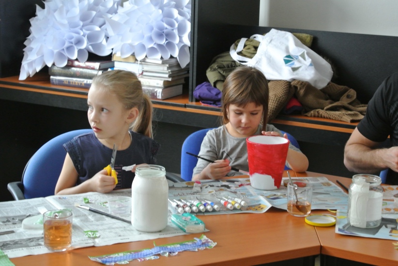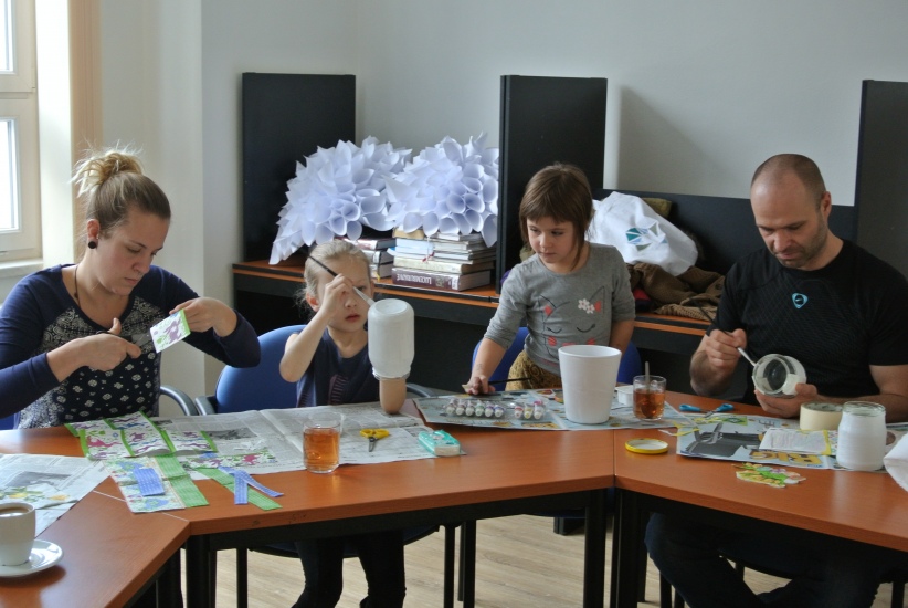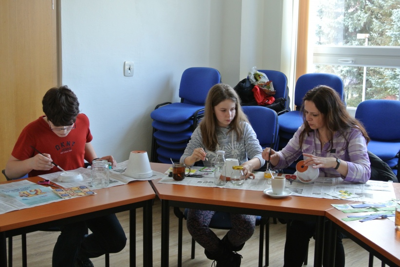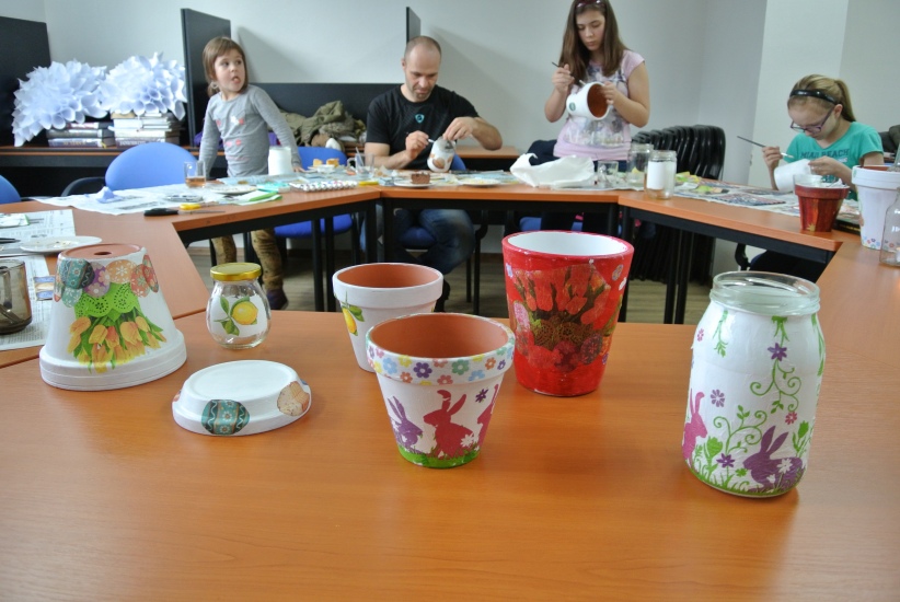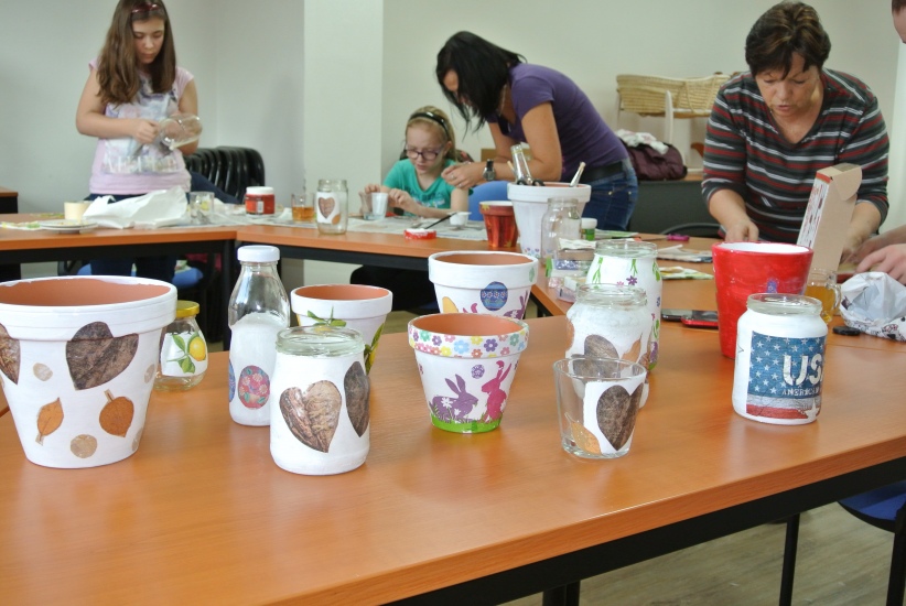 Ve středu 16. března jsme si s Helenou Reifovou poprvé v rámci našich dílniček vyzkoušeli zdobení tzv. ubrouskovou technikou, známou i pod názvem decoupage. Pod rukama účastníků vznikaly z obyčejných květináčů a sklenic krásné nádoby, jak si můžete prohlédnout na fotografiích.