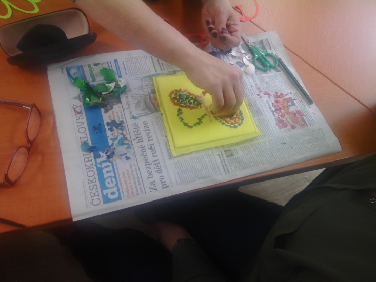 Ve středu 23. března připravila pro zájemce příjemnou výtvarnou dílnu Terezka Vojtíšková. Jak se pod rukama účastníků rodily krásné obrázky z barevných vajíčkových skořápek můžete sledovat na fotografiích.