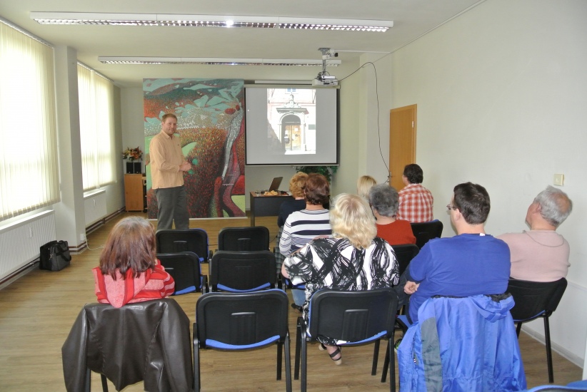 Ve středu 13. dubna v podvečer nám PhDr. Daniel Kovář představil, jako jeden z autorů, knihu Slavné stavby Českých Budějovic. Dozvěděli jsme se řadu zajímavostí, jak kniha vznikala, jak někdy i kuriózně byly pořizovány fotografie a hlavně mnoho informací o vybraných stavbách. PhDr. Kovář touto přednáškou také odstartoval cyklus připravovaných besed na téma Jihočeská metropole.