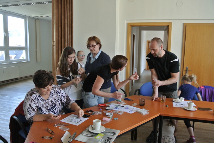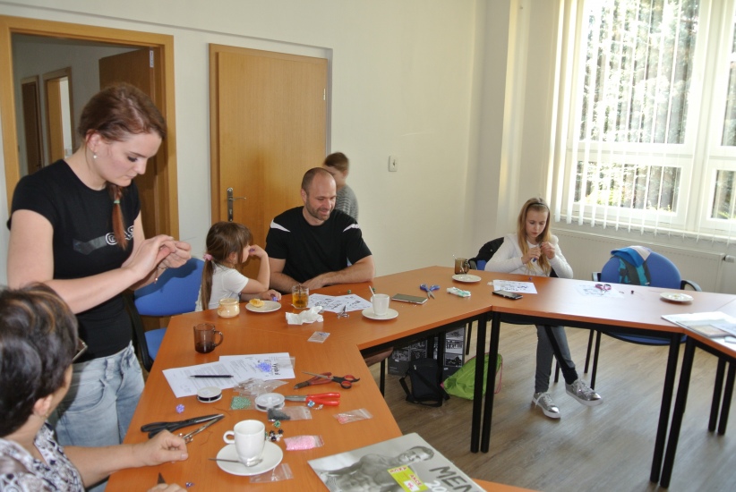 Středeční odpoledne v knihovně patřilo těm, kteří si chtěli vyzkoušet výrobu vlastních náušnic. Dílnu opět krásně připravila Helena Reifová.
