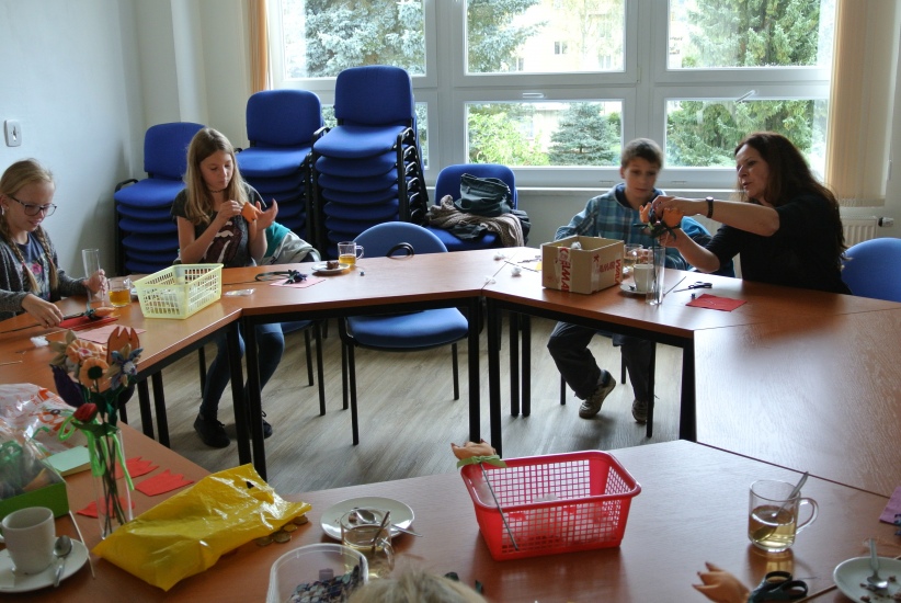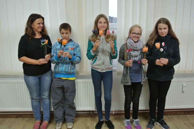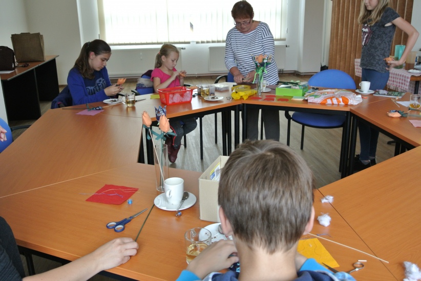 Ve středu 5. října odpoledne se sešli v knihovně ti, které nalákala nabídka vytvořit si nikdy nevadnoucí kytici. Na fotografiích si můžete prohlédnout, jak pod rukama šikovných tvůrců a pod vedením Mgr. Karly Votřelové vznikaly krásné textilní květiny.
