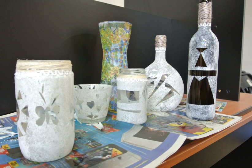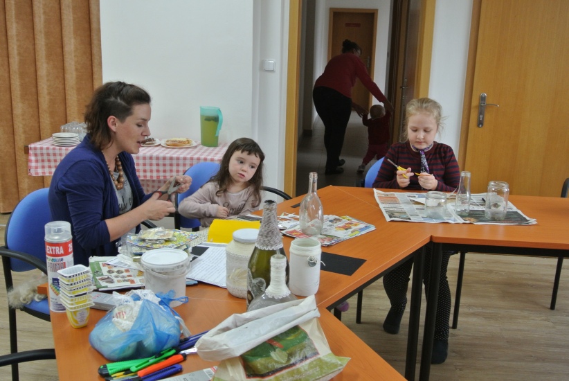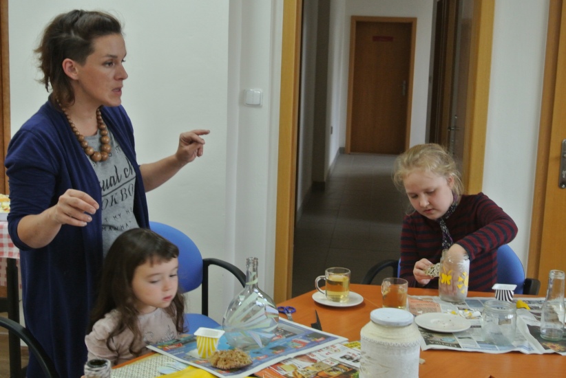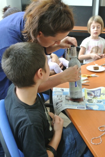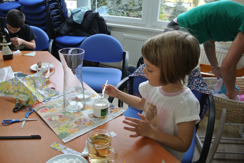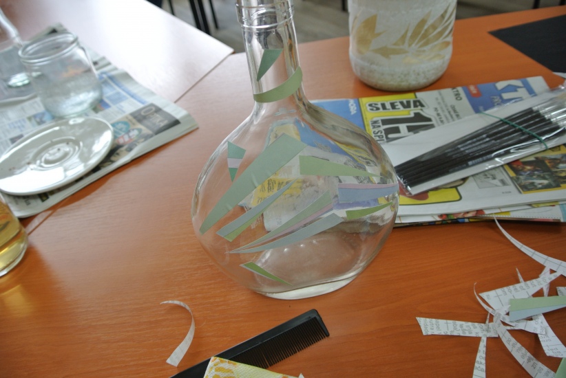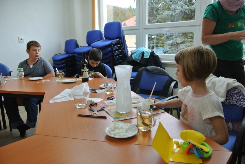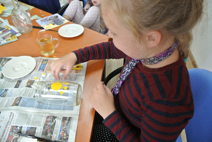 Ve středu 19. října připravila pro zájemce výtvarnou dílnu Mgr. Tereza Vojtíšková. Jak lze z lahví a sklenic, které většinou končí v odpadu, vyrobit ozdobné předměty si můžete prohlédnout na fotografiích. A zvládli to i ti nejmenší...