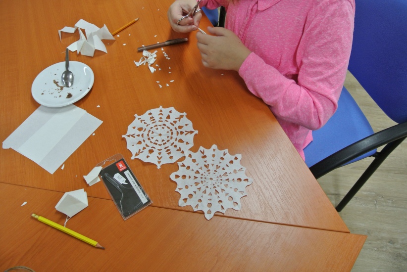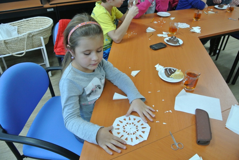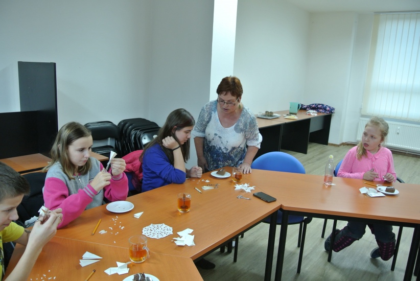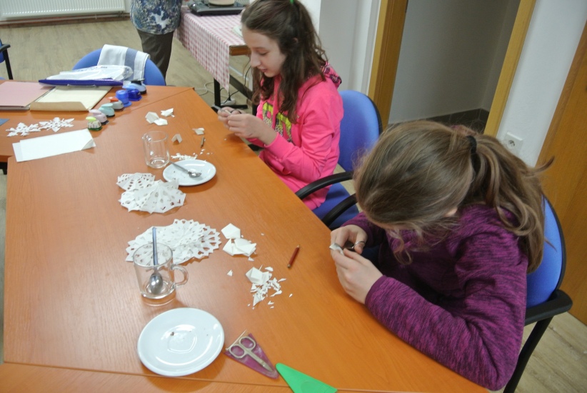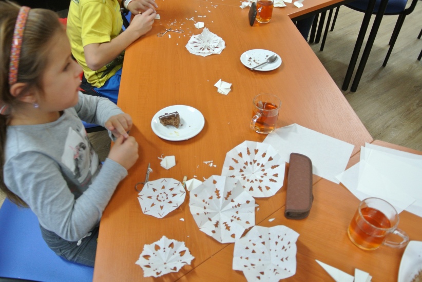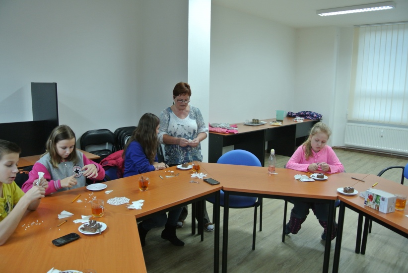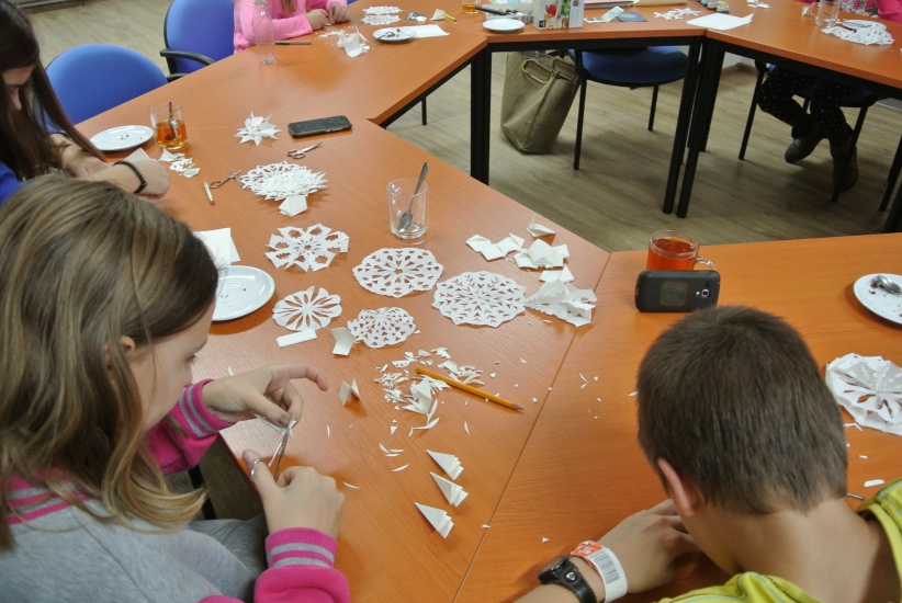 Ve středu 9. listopadu proběhla pod vedením Mgr. Votřelové dílna, na které jsme vyráběli vánoční hvězdičky nebo možná sněhové vločky. Nejtěžší na celé práci bylo správně poskládat průklepový papír, aby se po vystřižení vločka nerozpadla. Samotné stříhání šlo dětem velmi dobře a každý vyrobil hned několik vloček. Vystřižené hvězdičky jsme nakonec ještě namočili do rozpuštěného vosku. Na fotografiích můžete posoudit, jak se dětem dařilo. Všechny si určitě zaslouží velkou pochvalu.
