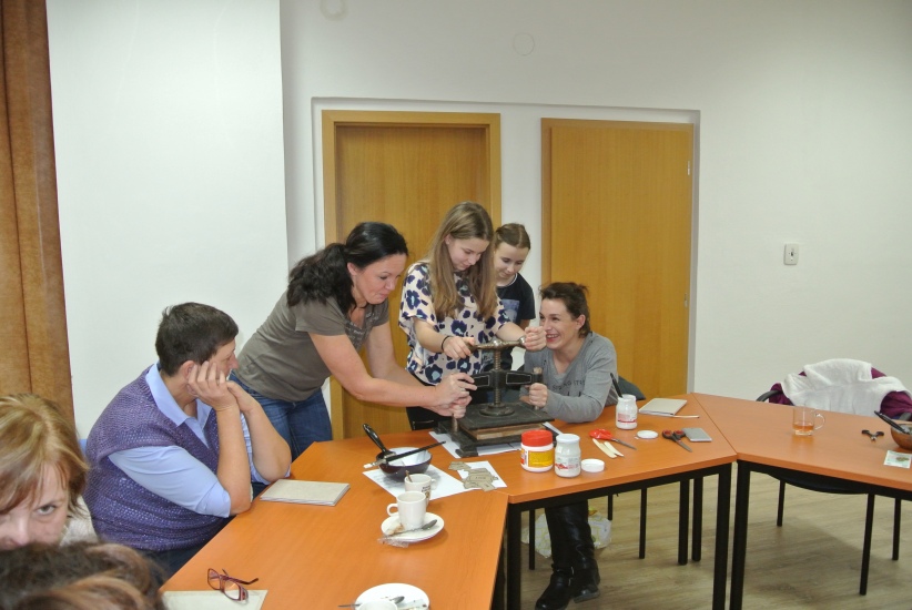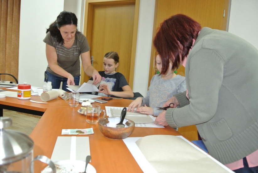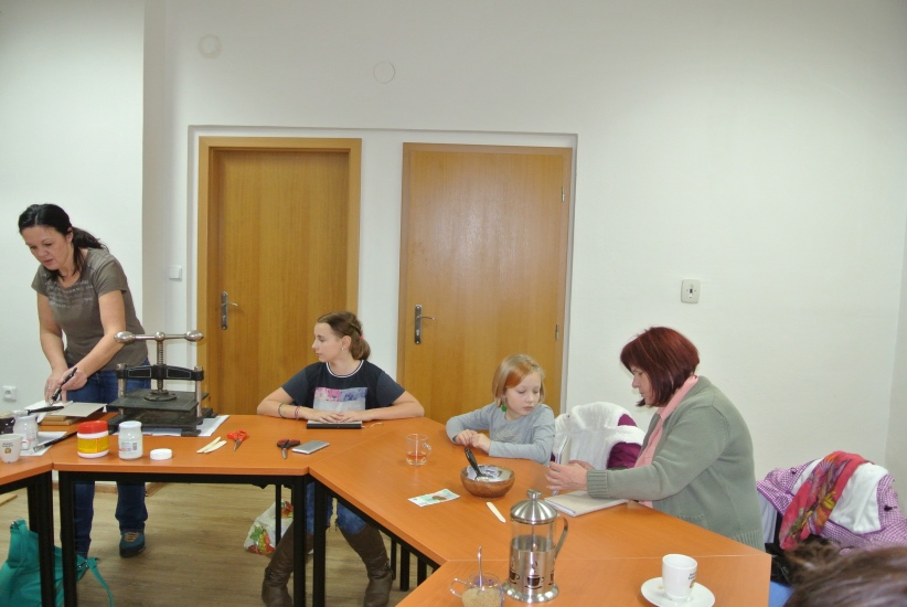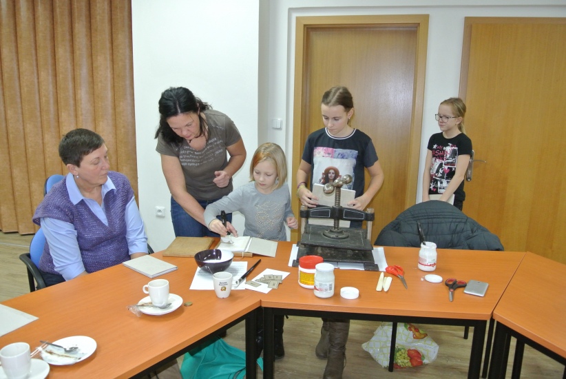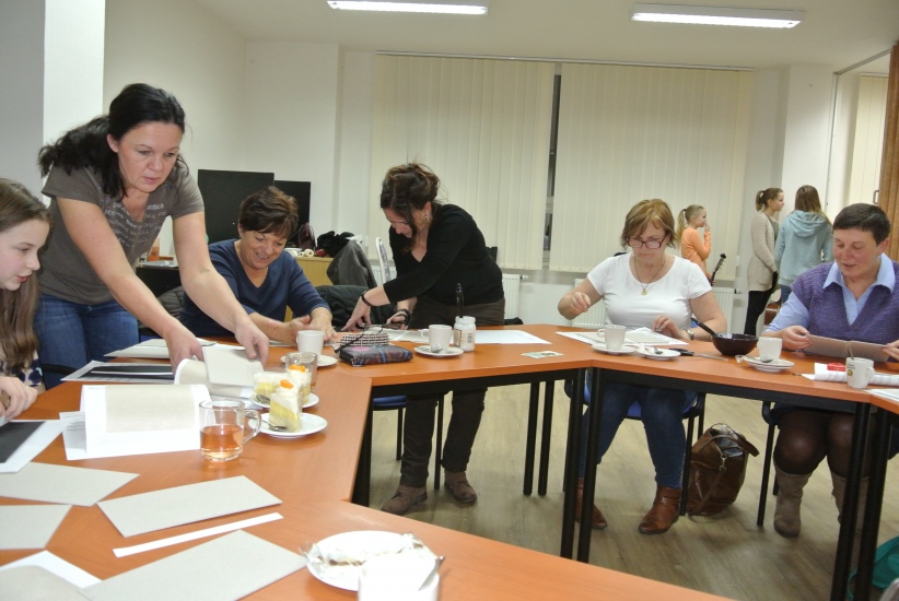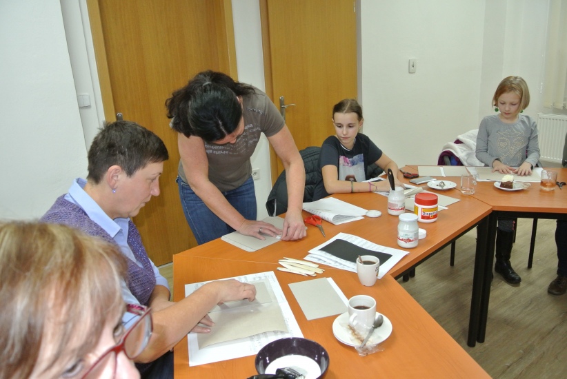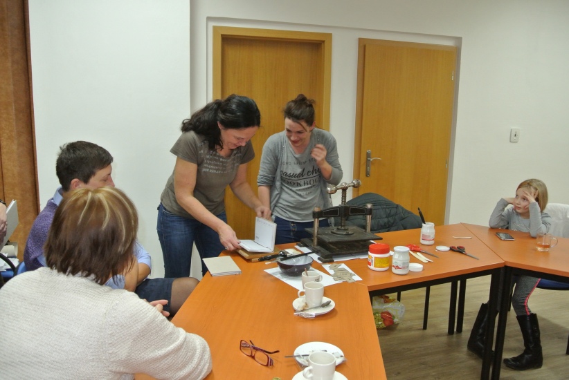 Ve středu 14. prosince se sešli zájemci o poslední letošní dílnu v netradičním čase až v 17.00 a tvoření se neslo v duchu příprav na nový rok. Pod vedením Jiřiny Halmlové a pod rukama šikovných tvůrců tady totiž vznikaly diáře na rok 2017.
