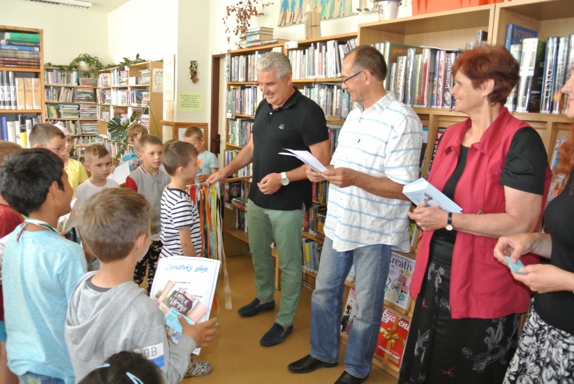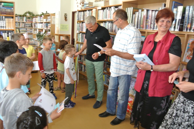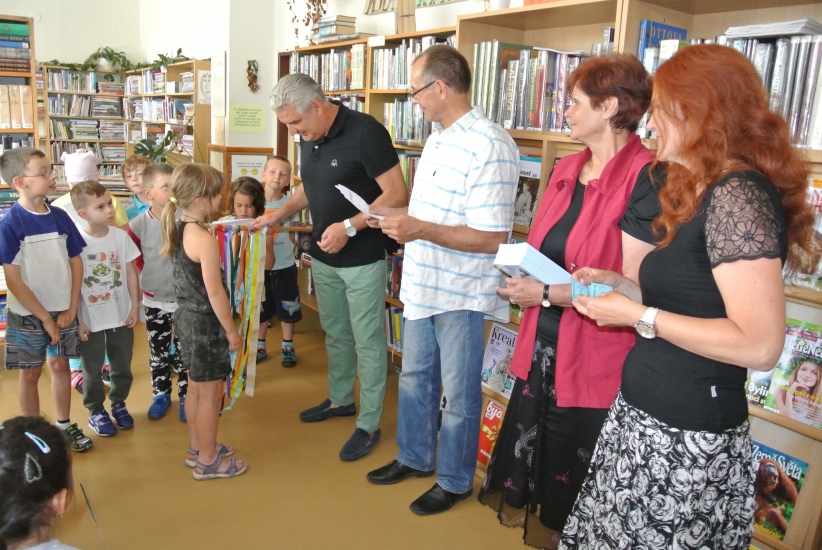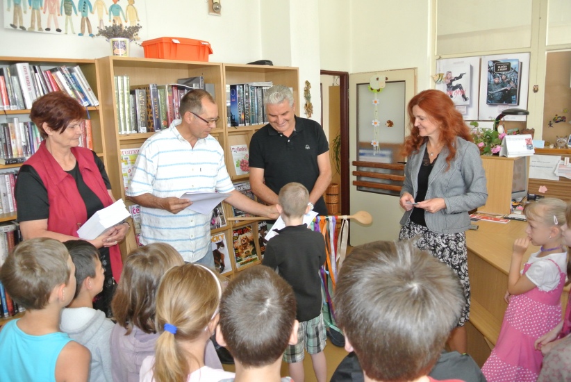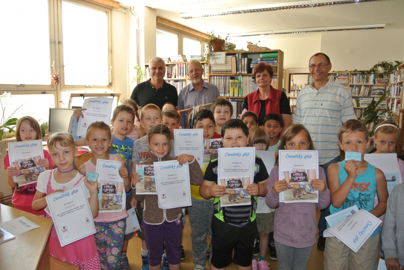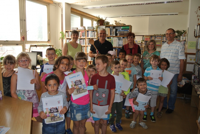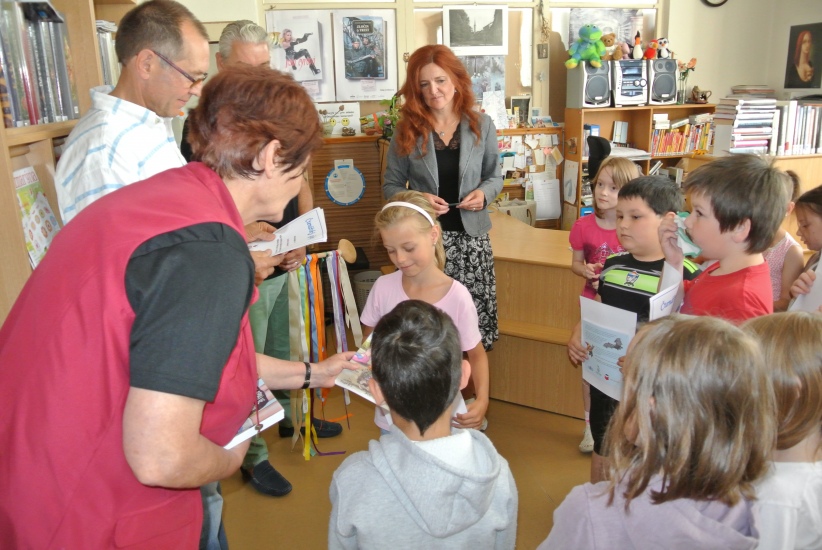 Ve středu 14. června završili prvňáčci svou letošní cestu do knihovny při slavnostním pasování na čtenáře. Kromě třídních učitelů paní Batíkové a pana Sitty se akce zúčastnila i ředitelka školy paní Kopačková, starosta města pan Krák a místostarosta pan Štindl. Děti jako již tradičně dostaly čtenářské glejty, volnou roční registraci do knihovny a knížku "Lapálie v Lampálii".