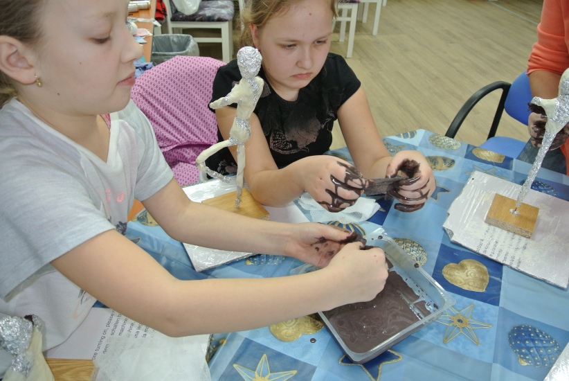 Ve středu 31. ledna byla pro zájemce připravena dílna, kde si mohli vyzkoušet neobvyklou techniku výroby sošek. Je neuvěřitelné, že z původně pouze drátěného obrysu postavy se účastníkům pod vedením paní Petry Exnerové podařilo vytvořit krásné sošky, jak dokazují obrázky.