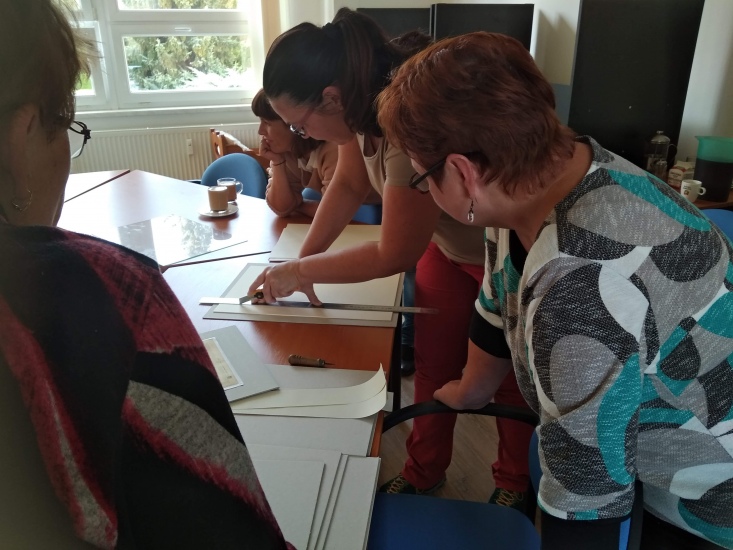 Ve středu 3. října si účastníci odpoledního tvoření v knihovně pod vedením paní Halmlové zapaspartovali obrázek. Paní Halmlová také předvedla, jak se dělá pasparta pod sklem.