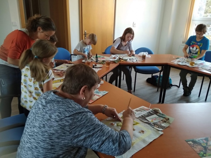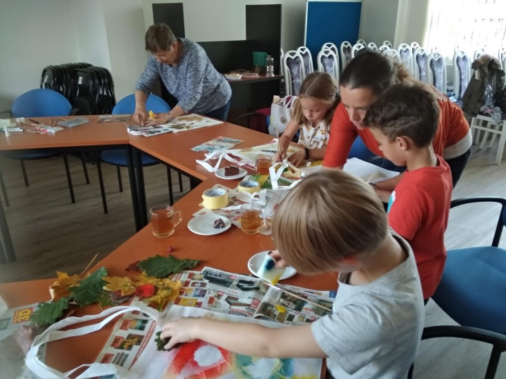 Ve středu 17. října byla pro zájemce připravena dílna, na které si každý pod vedením Terezy Vojtíškové krásně vyzdobil tašku. Tereza nejprve všem ukázala postup a pak už každý tvořil podle své fantazie za jejího laskavého dohledu.