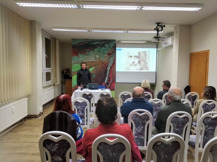 Ve středu 13. listopadu vyslechli návštěvníci knihovny velmi zajímavou přednášku malíře a restaurátora pana Josefa Paloudy. Naše knihovna tak navázala na dva předchozí díly cyklu "Jak naučit Leonarda malovat" a zároveň se připojila i k významným světovým kulturním institucím, které v letošním roce připomínají 500 let od úmrtí tohoto proslulého renesančního umělce a vynálezce.