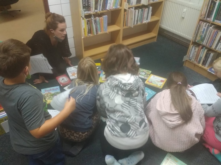20. září navštívily knihovnu děti s paní učitelkou Vojtíškovou. Čekaly na ně připravené knihy, se kterými pak děti pod vedením paní učitelky pracovaly.