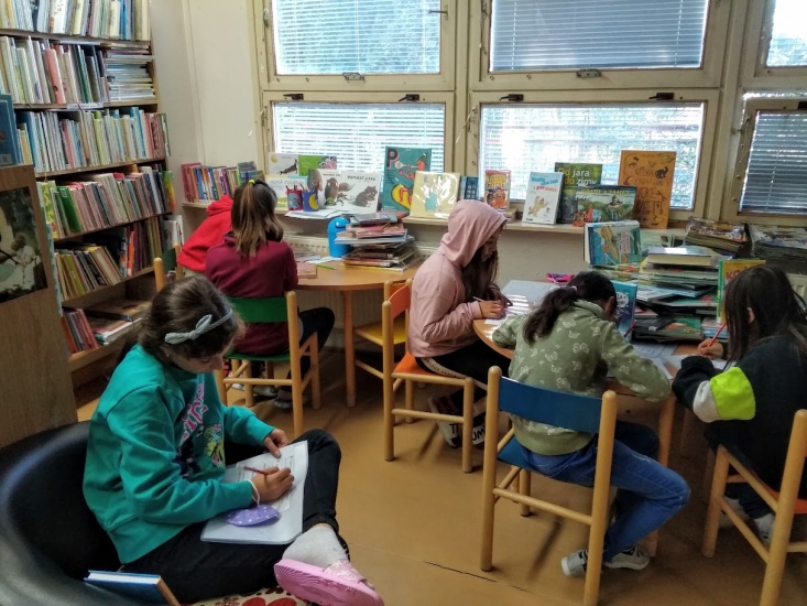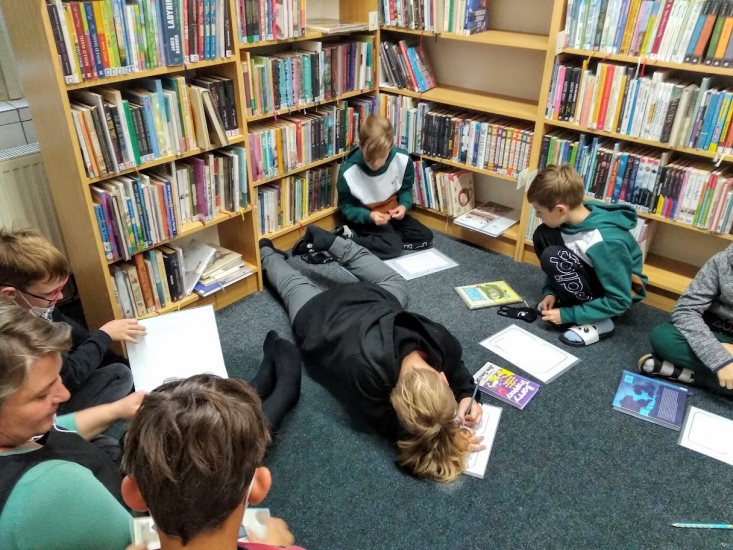 Pro žáky 4. A byly v knihovně připraveny knihy, se kterými děti pak společně pracovaly.