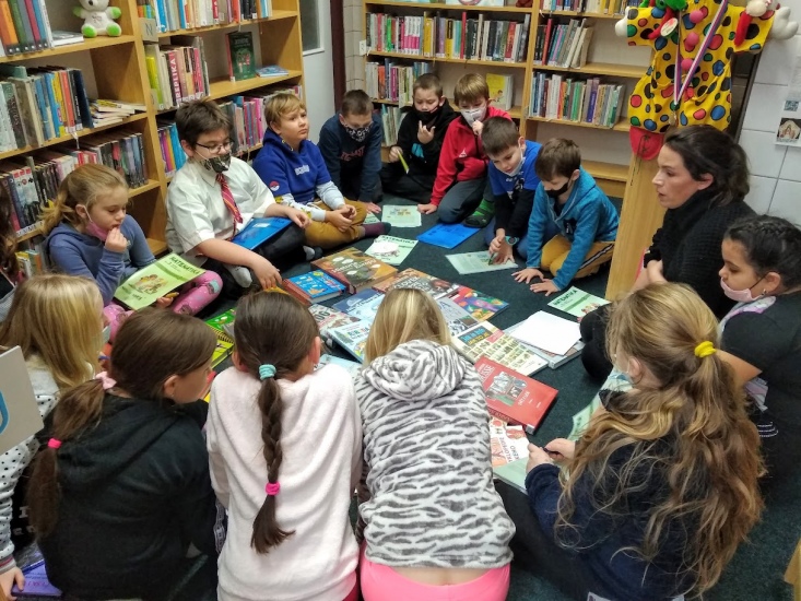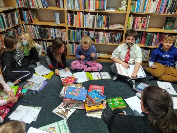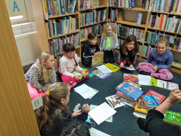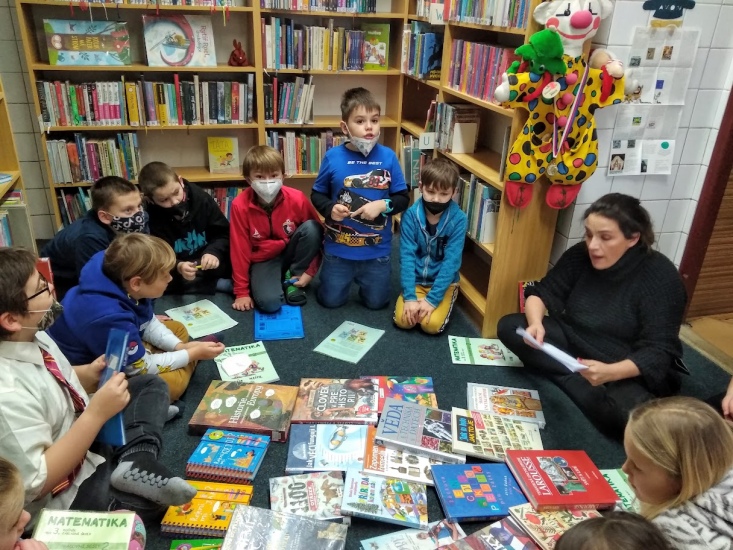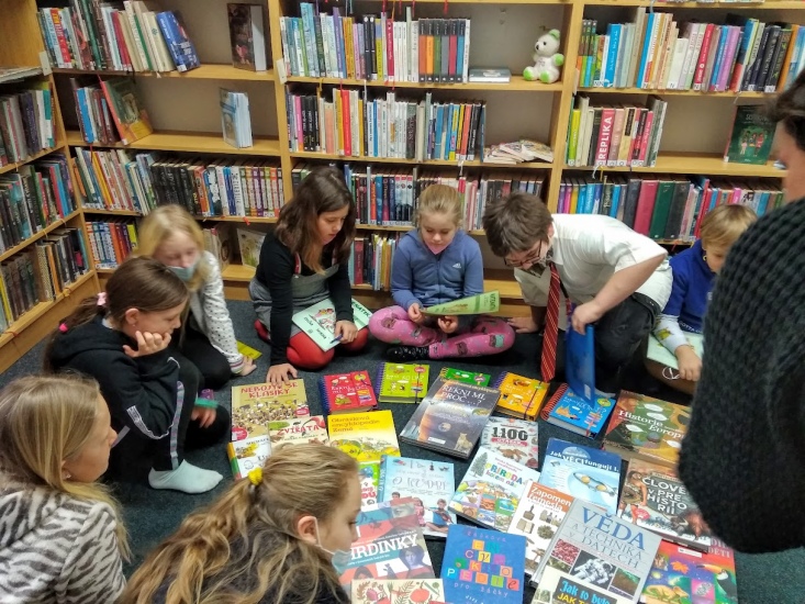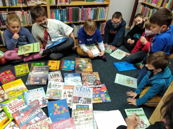 V pondělí 24. ledna opět navštívily knihovnu děti s paní učitelkou Vojtíškovou a společně i samostatně pracovaly s připravenými encyklopediemi.