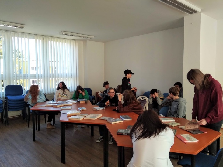 V pondělí 11. dubna navštívili knihovnu žáci 8. ročníku A zdejší ZŠ s paní učitelkou Annou Šimečkovou. Byla pro ně připravena literatura, ve které se autoři zabývají tématem 2. světové války.