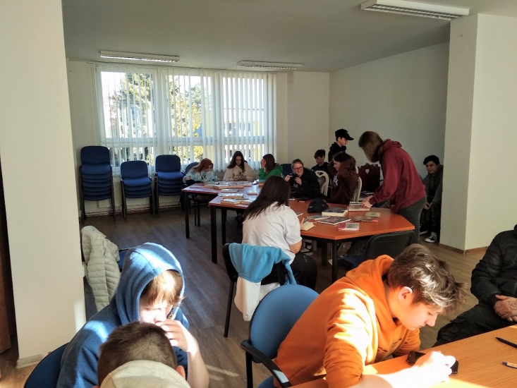 Žáci osmého ročníku v knihovně