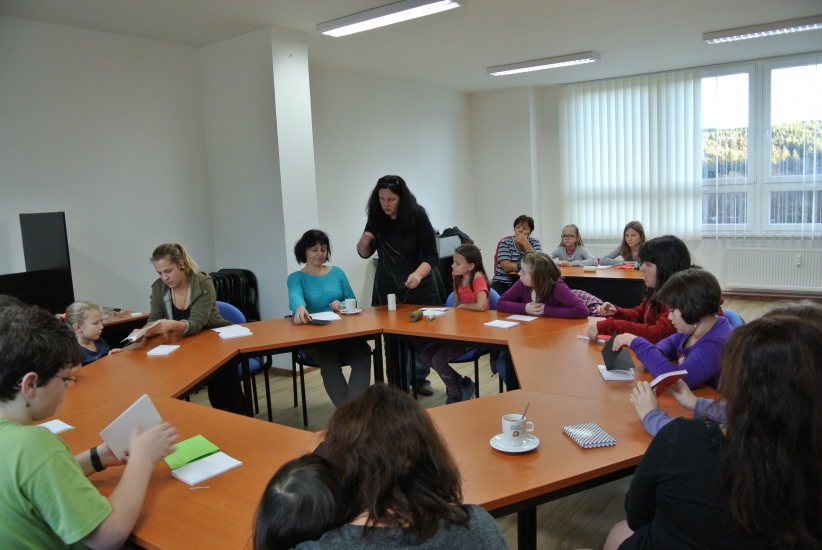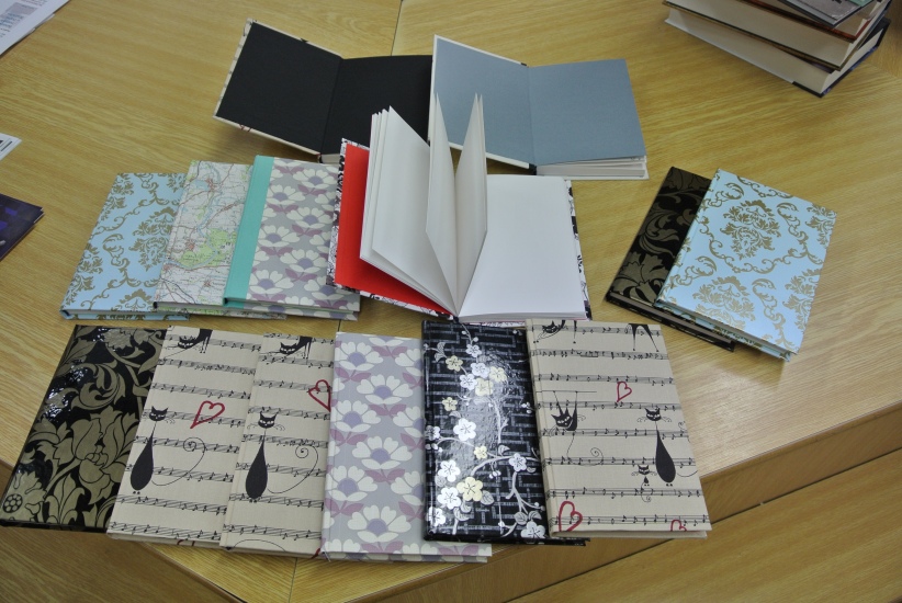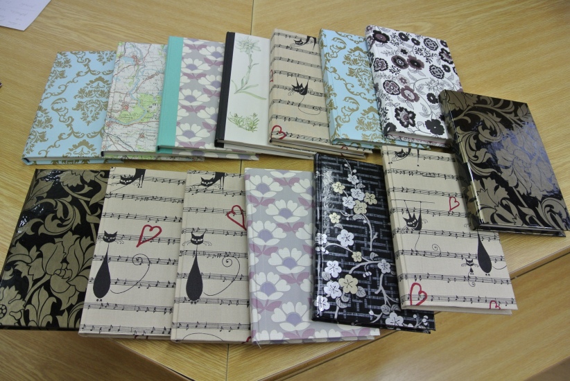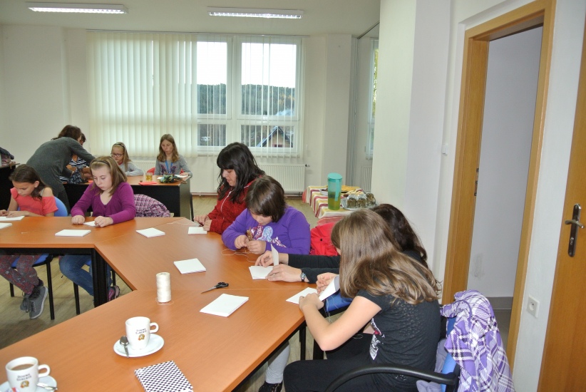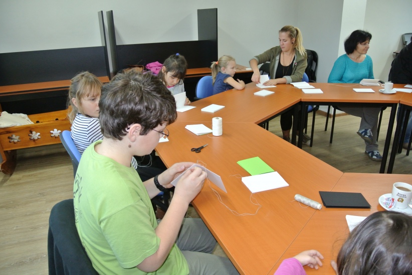 Výtvarná dílna ve středu 11. listopadu nabídla účastníkům možnost ušít si pod vedením knihařky Jiřiny Halmlové notýsek. A že je to práce nelehká zjistili mnozí přítomní, ačkoli měli nachystaný veškerý materiál. Dokončení výrobku - potažení látkou a začištění hřbetu - si vzala opět na starost paní Halmlová (notýsek se musí dát na nějaký čas do lisu). Galerie bude tedy ještě doplněna fotografiemi finálních výrobků. ... a už je tady máme! Na fotografiích vidíte jaké krásné notýsky si účastníci této dílny vyrobili.