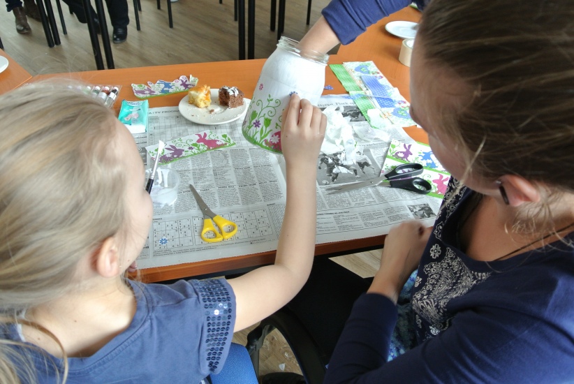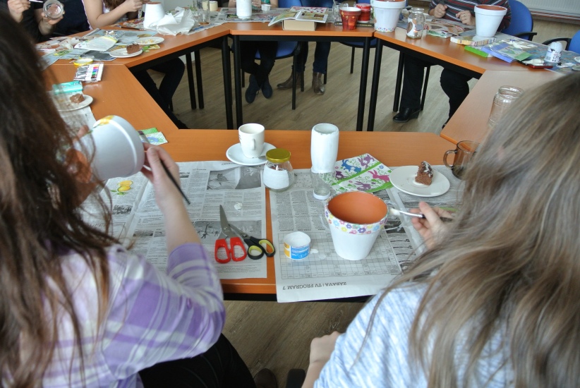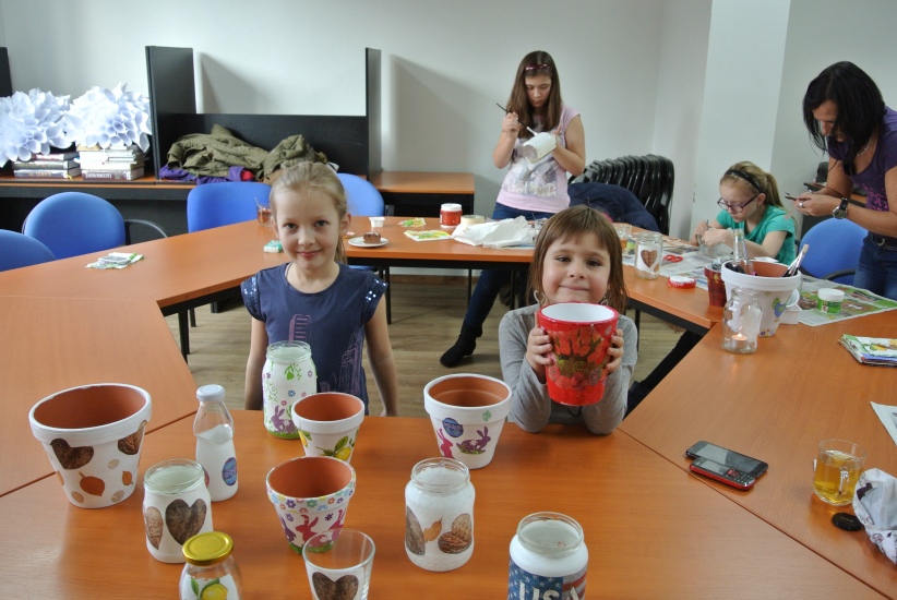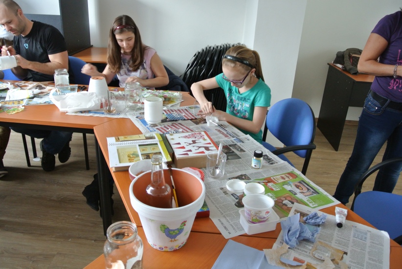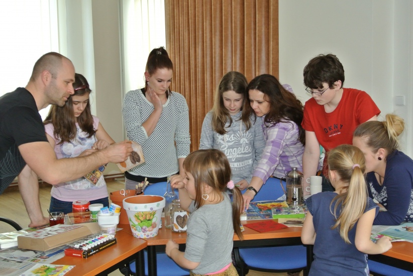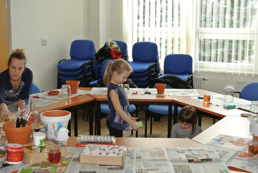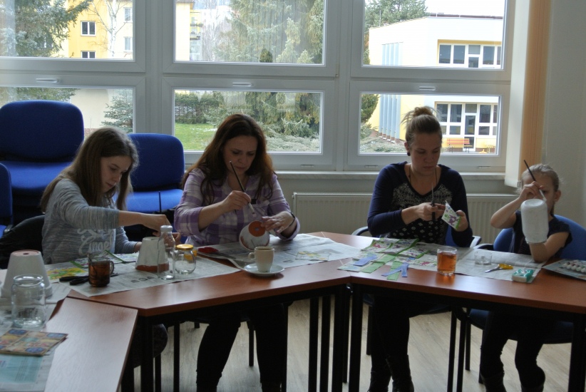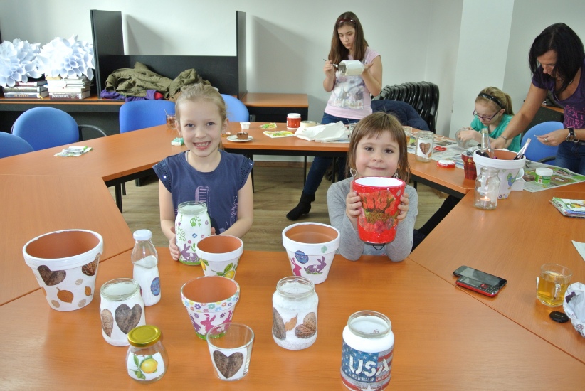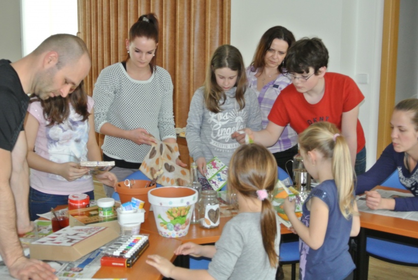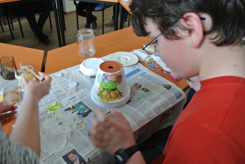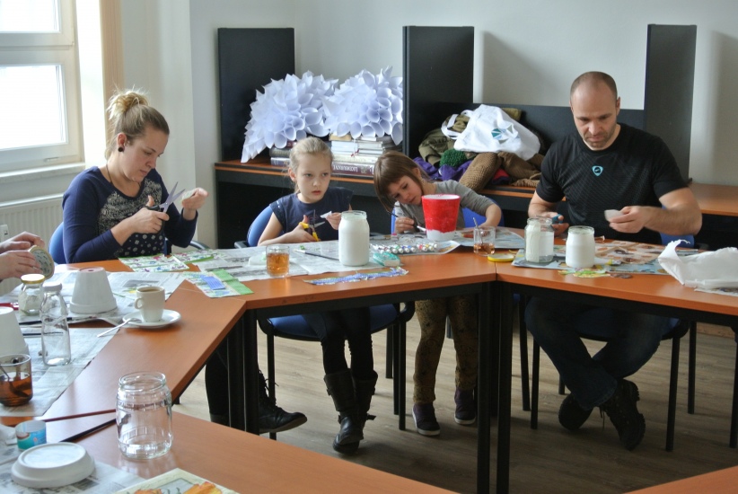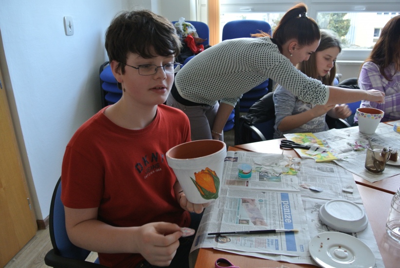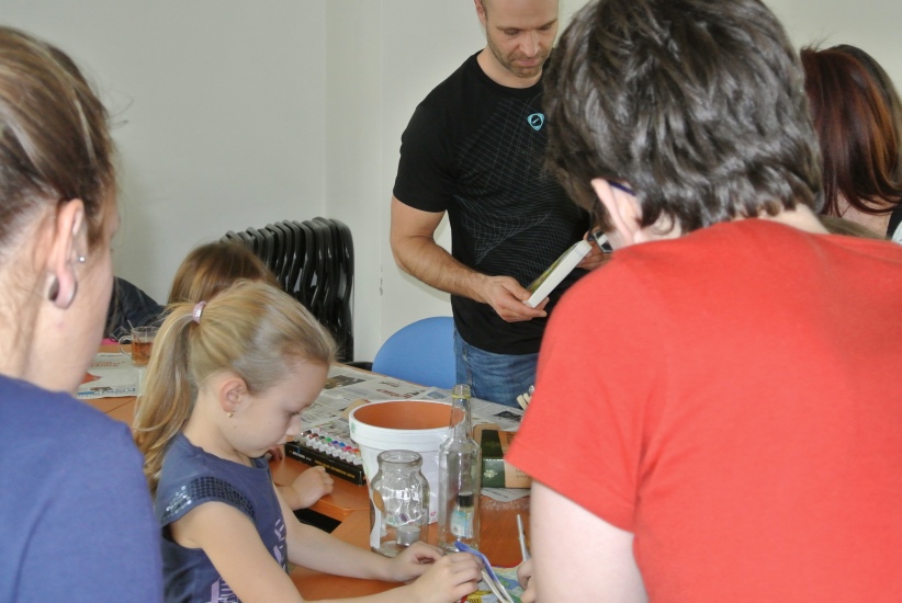 Ve středu 16. března jsme si s Helenou Reifovou poprvé v rámci našich dílniček vyzkoušeli zdobení tzv. ubrouskovou technikou, známou i pod názvem decoupage. Pod rukama účastníků vznikaly z obyčejných květináčů a sklenic krásné nádoby, jak si můžete prohlédnout na fotografiích.