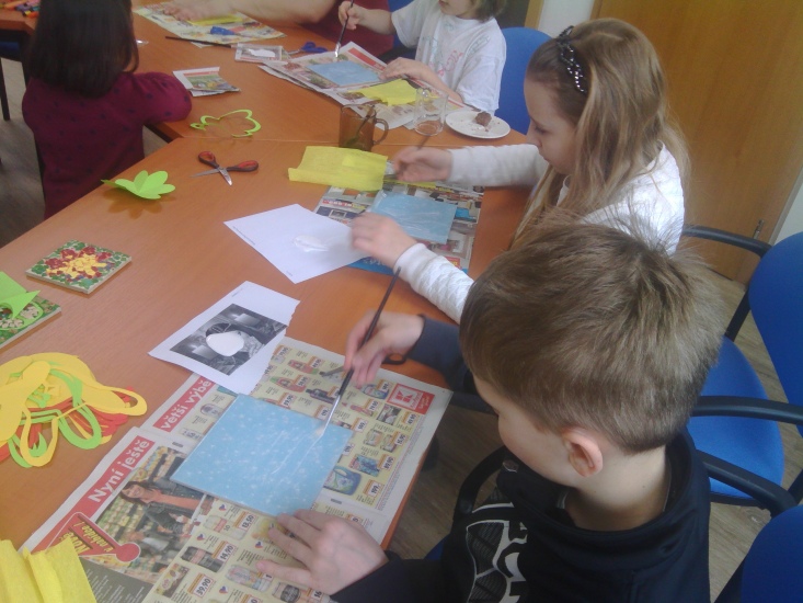 Ve středu 23. března připravila pro zájemce příjemnou výtvarnou dílnu Terezka Vojtíšková. Jak se pod rukama účastníků rodily krásné obrázky z barevných vajíčkových skořápek můžete sledovat na fotografiích.