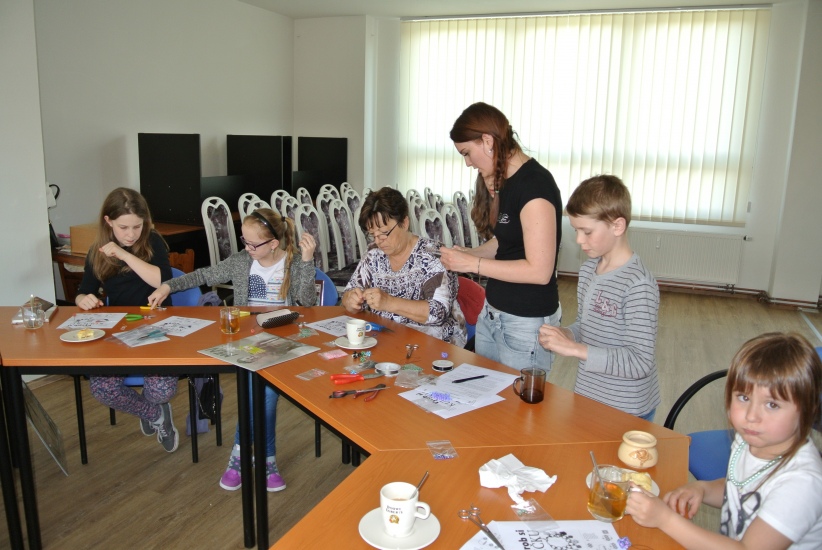 Středeční odpoledne v knihovně patřilo těm, kteří si chtěli vyzkoušet výrobu vlastních náušnic. Dílnu opět krásně připravila Helena Reifová.