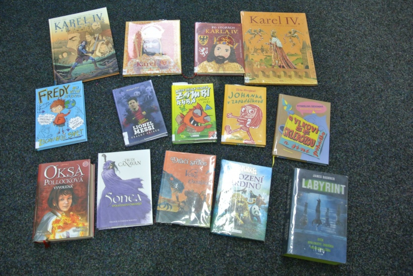 V pátek 14. října se přišli do knihovny podívat čtvrťáci s paní učitelkou Miroslavou Mrázovou. Četli jsme ukázky z nových knih: Moje velká tlustá zombí ryba, pohádku O vlkovi se sklerózou a ukazovali jsme si knihy o králi Karlu IV., jehož 700. výročí narození si v letošním roce připomínáme.