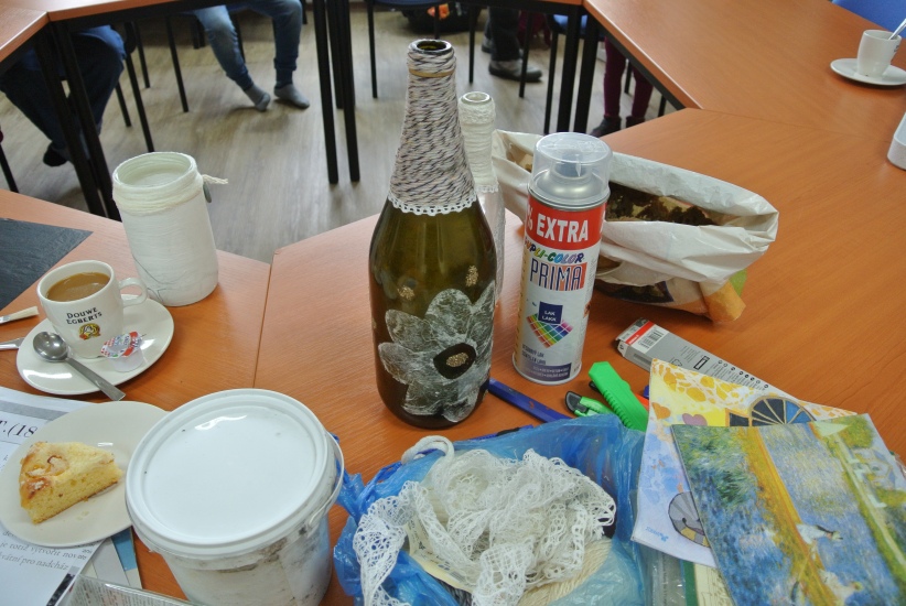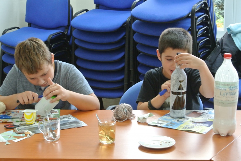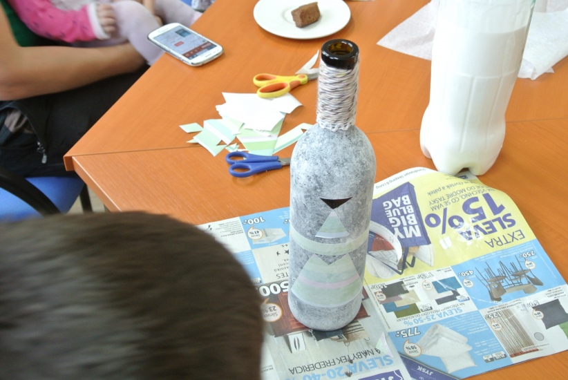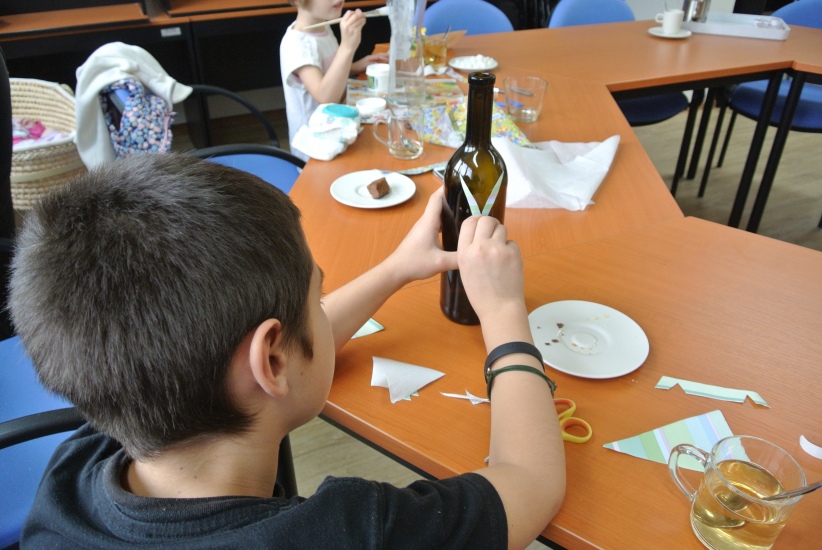 Ve středu 19. října připravila pro zájemce výtvarnou dílnu Mgr. Tereza Vojtíšková. Jak lze z lahví a sklenic, které většinou končí v odpadu, vyrobit ozdobné předměty si můžete prohlédnout na fotografiích. A zvládli to i ti nejmenší...