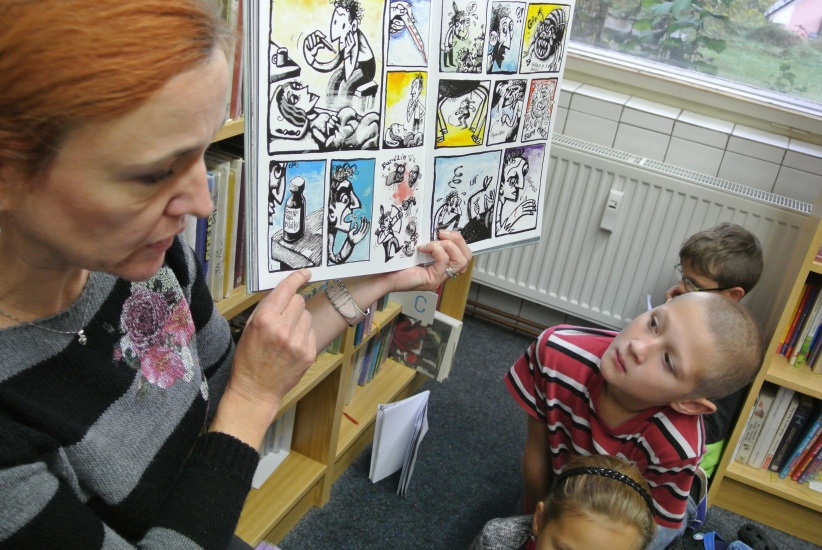 Hlavním tématem této návštěvy byla kniha příběhů oblíbeného autora Pavla Čecha: Skoro tucet. V knihovně jsme si stihli prohlédnout dva příběhy z jedenácti, zbytek si děti prohlédnou ve škole a pokusí se vymyslet 12 příběh, který zbývá do tuctu.