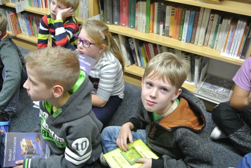 V pátek 21. října navštívily knihovnu postupně oba třetí ročníky s paní učitelkami Mgr. Vojtíškovou a Mgr. Tesařovou. Děti přinesly obrázky - ilustrace ke knize, kterou mají půjčenou a čtou si z ní při hodinách čtení. Někteří se také pochlubili deníčky, které dostali při poslední návštěvě knihovny a zapisují si do nich, kdo jim doma čte a jak dlouho čtou oni.